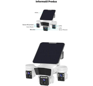 Inainte de a monta panoul solar, conectati camera la priza timp de 8 ore pentru formatarea acumulatorilor, folosind un incarcator de 5V, 2 amperi. Alimentarea cu un alt tip de incarcator poate duce la arderea placii de baza si pierderea garantiei.