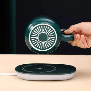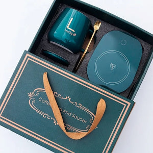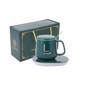 Cana Inteligentă Lucky - Cană pentru Încălzire Automată a Băuturilor cu Suport de Încărcare 55°C, Verde Regal, 350 ml, cu Capac și Lingură - Încălzitor Electric pentru Cafea, Lapte, Ceai, Ciocolată Caldă, Utilizare la Domiciliu și Birou