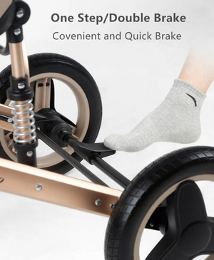 - Suspensii pe rotile din fata si spate, pentru o plimbare lina pe orice teren.